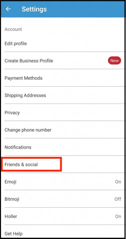 - Now go all the way back to the main settings page, and select Friends & social.
