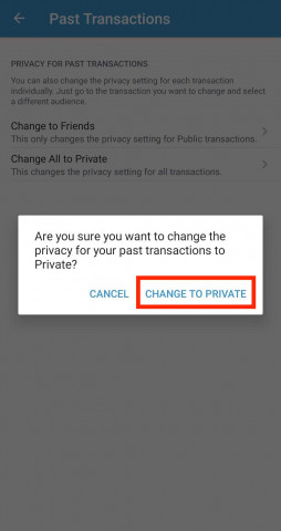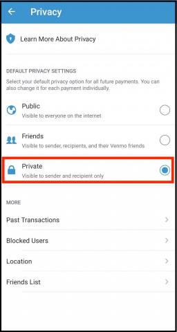 - Back on the Privacy settings page, make sure your Default privacy settings look like this: set your default privacy option for all future payments to Private.